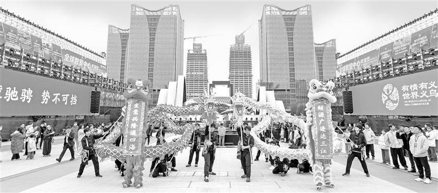 圖為義烏市場(chǎng)新春開(kāi)業(yè)舞龍醒獅表演。 李小平/供圖